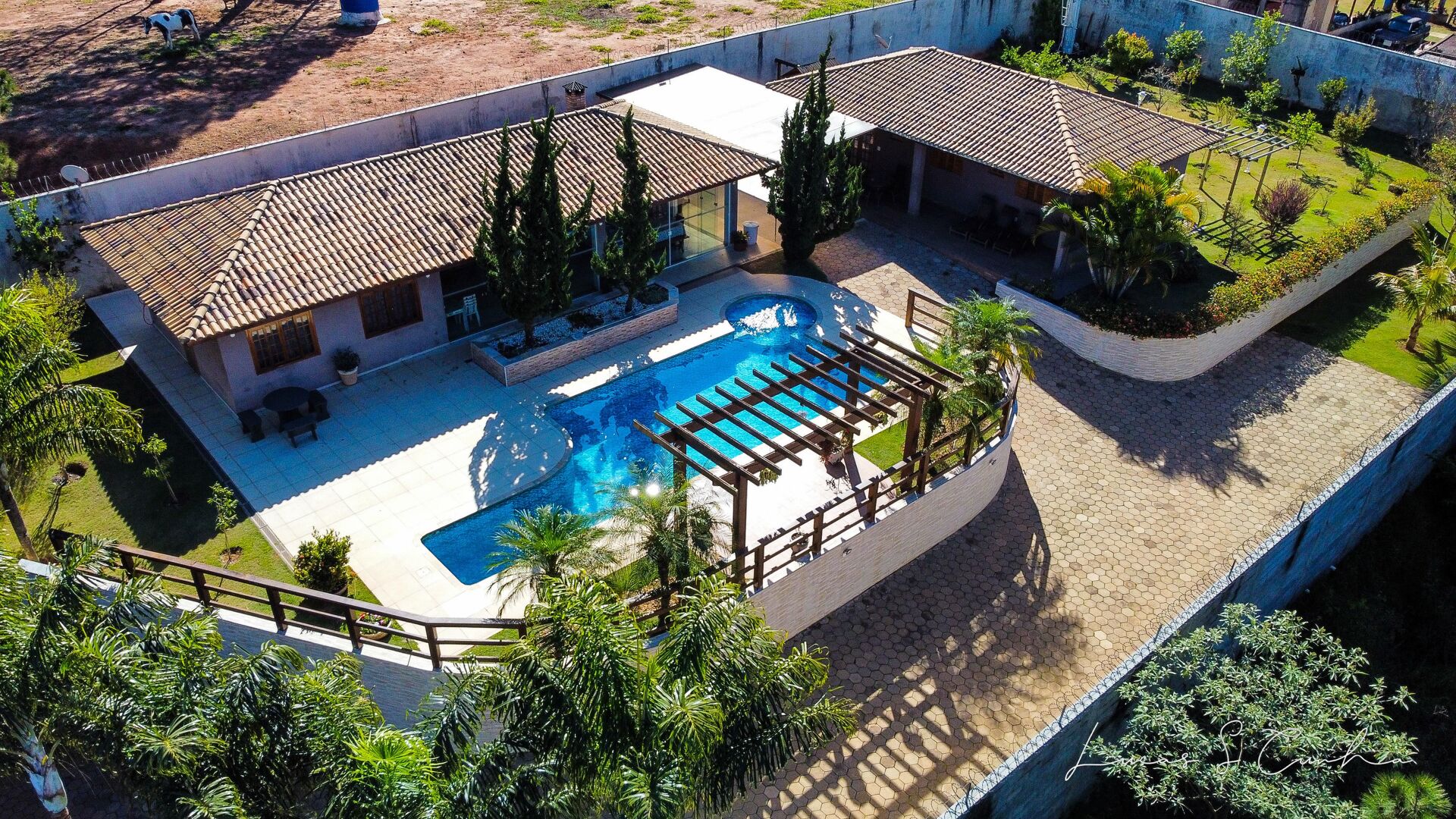 Muito bem projetado, a apenas 500 metros do asfalto (estrada Manoel gerez navarro) o imóvel conta com salão de festas e salão de jogos, churrasqueira completa, piscina com hidro, a casa possui 2 dormitórios sendo 1 suíte, além de mais 1 suíte no salão de festas.